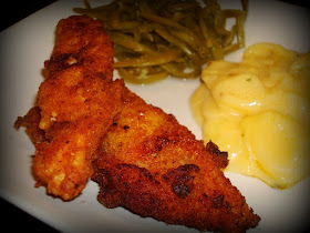 Dip chicken strip into egg coating the whole thing. Then roll in Cheez-It mixture until evenly coated. Put into already hot frying pan and oil frying the chicken for a few minutes on each side until completely cooked and nicely browned.